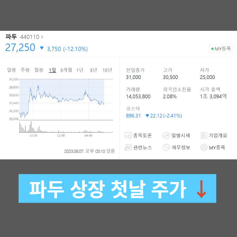 2023년 첫 '조 단위 대어'로 기대를 모았던 파두의 상장 결과가 하반기 IPO 시장을 예측할 중요한 지표로 생각되고 있습니다. 상장 첫날인 오늘 '파두' 공모주의 주가가 매우 궁금한데요.
