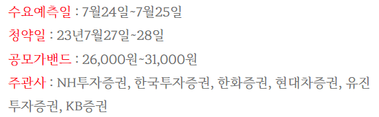 위에서 언급한 것처럼 이글은 쓰고 있는 오늘 수요예측이 마무리됩니다. 이번 예상 공모가는 상단인 '31000원을 예측하고 있습니다.