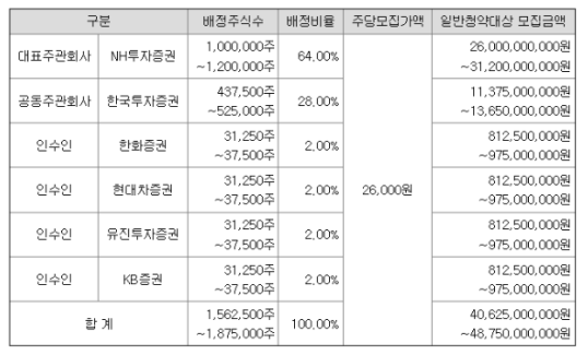 이번 파두 청약에서 주관사는 NH투자증권, 한국투자증권, 한화증권, 현대차증권, 유진투자증권, KB증권이 배정되었습니다. 위에서 확인해 보면 NH투자증권의 배정비율 64%로 가장 많은 수량이 배정됩니다.