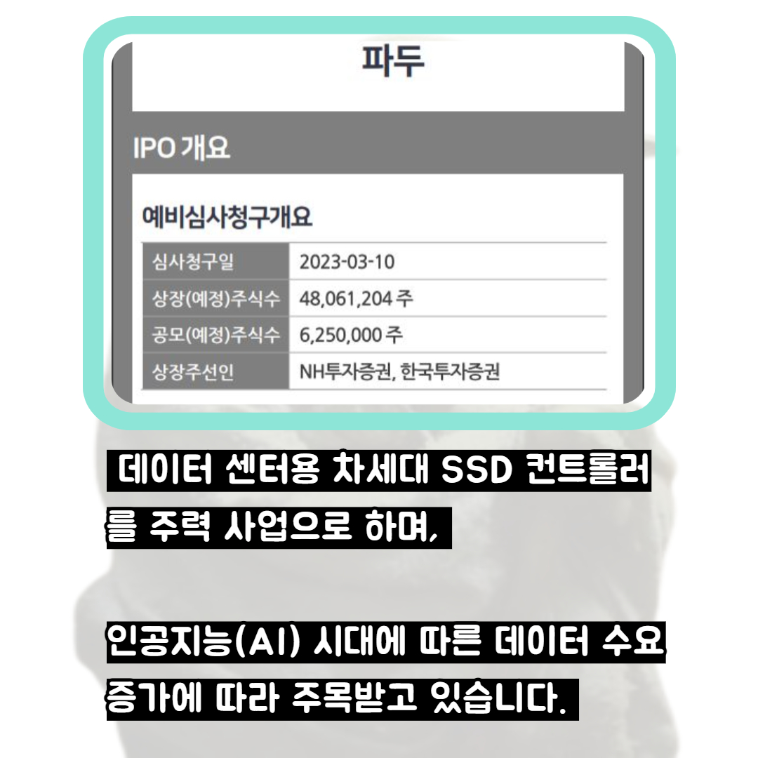 파두의 공모주 청약은 시장에 기대가 큰 만큼 무조건적인 성공투자는 아니지만, 많은 투자자들이 기대를 모으고 있습니다.