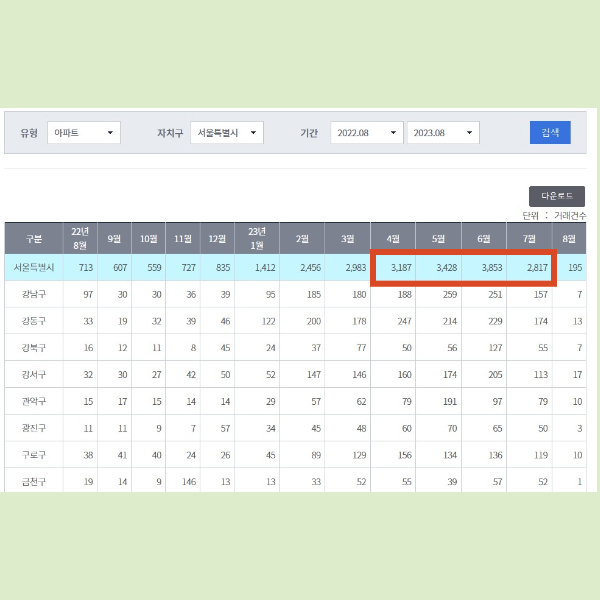 최근의 부동산 반등을 이끌고 있는 서울 부동산의 거래량 통계를 확인해 보겠습니다.